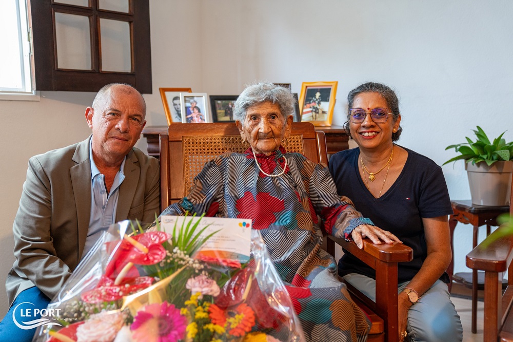 Irène Lim Houn Tchen célèbre aujourd’hui son 100e anniversaire entourée de sa famille et des élus locaux. Née à St-Denis, Irène a passé l’essentiel de sa vie au Port, travaillant pendant plus de trente ans comme cantinière dans les écoles de la ville.