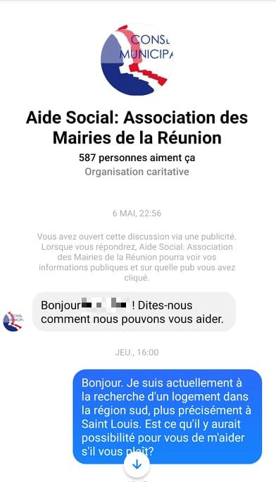 Attention ! Une auditrice a failli se faire arnaquer à cause d’une page Facebook qui se décline sous le nom « d’Aide Social : Association des Mairies de la Réunion ».