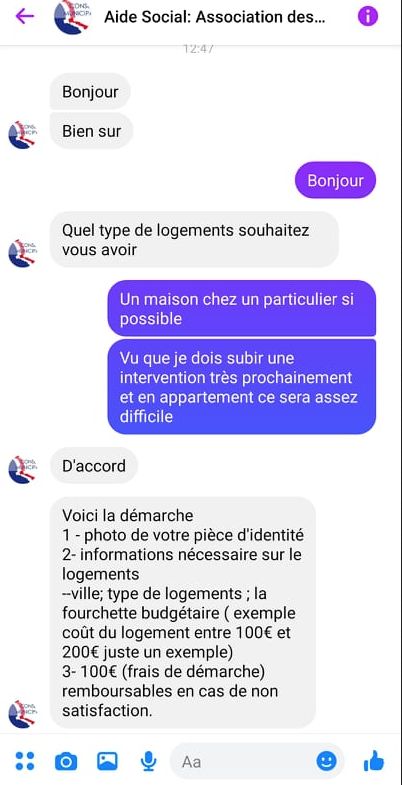 Elle pensait pouvoir faire une demande de logement via la messagerie, mais on lui a tout de suite demandé 100 euros…