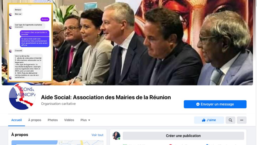 Attention ! Une auditrice a failli se faire arnaquer à cause d’une page Facebook qui se décline sous le nom « d’Aide Social : Association des Mairies de la Réunion ».