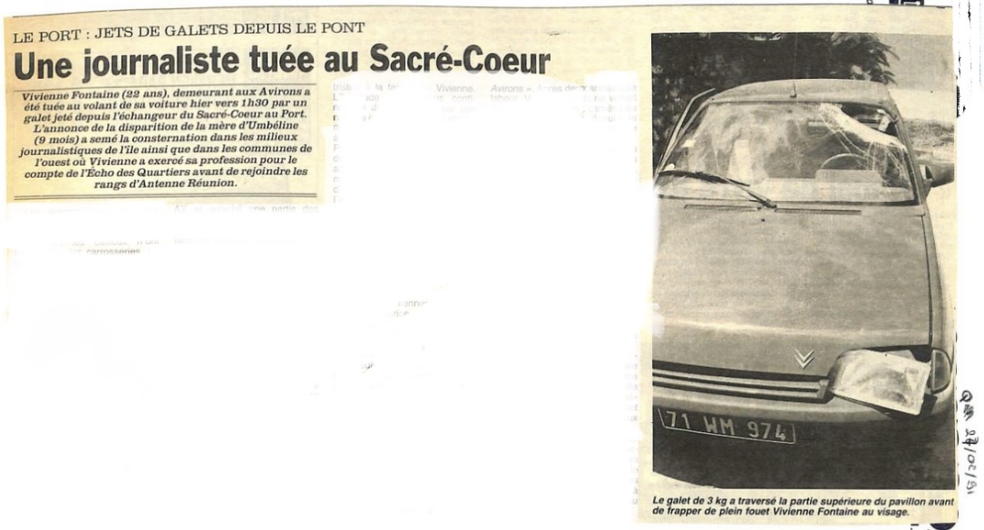 Ce drame rappelle qu’il y a 32 ans, un événement similaire s’était produit au même endroit de Sacré-Cœur, tuant une jeune journaliste comme vous pouvez le voir sur cet article du Quotidien de la Réunion (archives freedom).