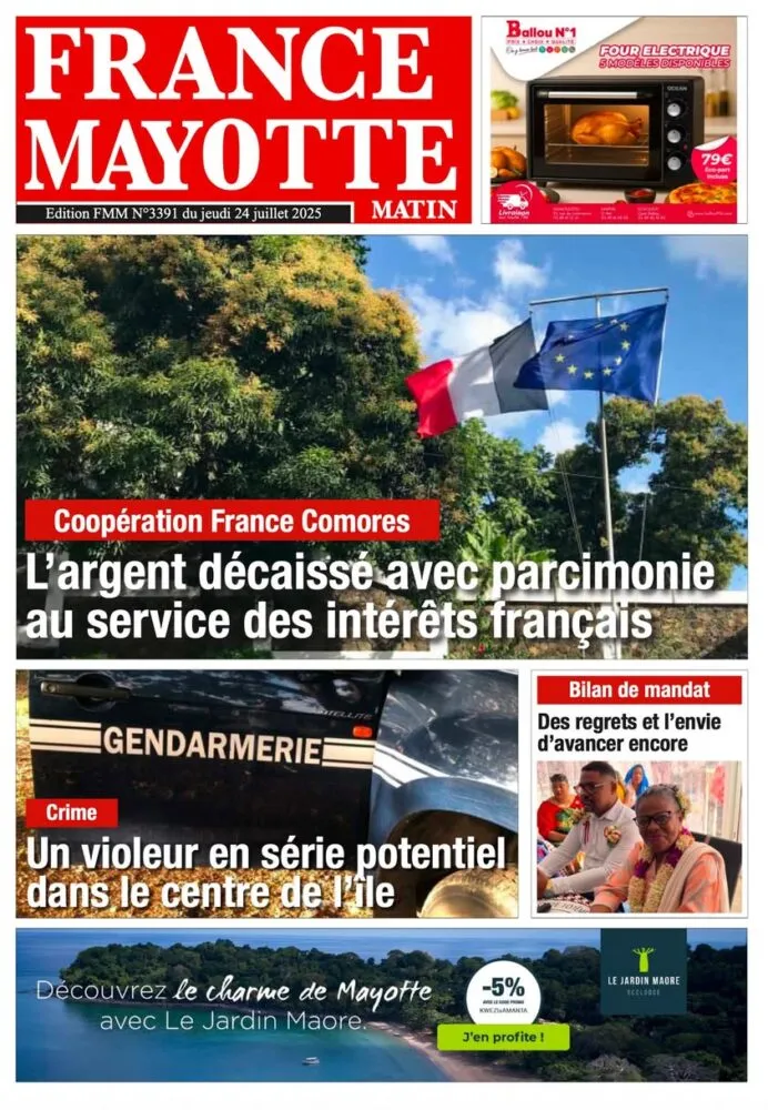 France Mayotte Matin met en exergue un fait divers particulièrement inquiétant : un violeur en série potentiel serait actif dans le centre de l’île. La gendarmerie est mobilisée et appelle à la vigilance. Sur le plan diplomatique, la coopération entre la France et les Comores fait débat : l’argent décaissé dans le cadre de projets bilatéraux serait, selon le journal, utilisé au profit exclusif des intérêts français, relançant le débat sur le déséquilibre dans la relation entre les deux pays.