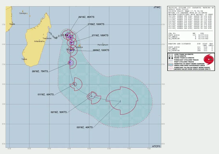 •Garance pourrait passer à moins de 50 km de l’île ou directement sur La Réunion en fin de nuit de jeudi à vendredi.