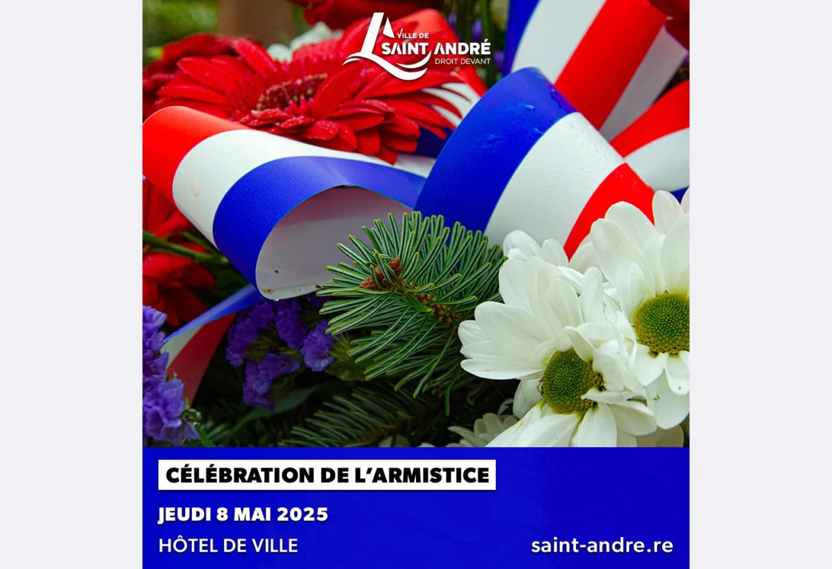 La Ville de Saint-André invite l’ensemble de la population à assister à la cérémonie de commémoration de l’Armistice ce jeudi 8 mai à 9h, sur le parvis de la Mairie.