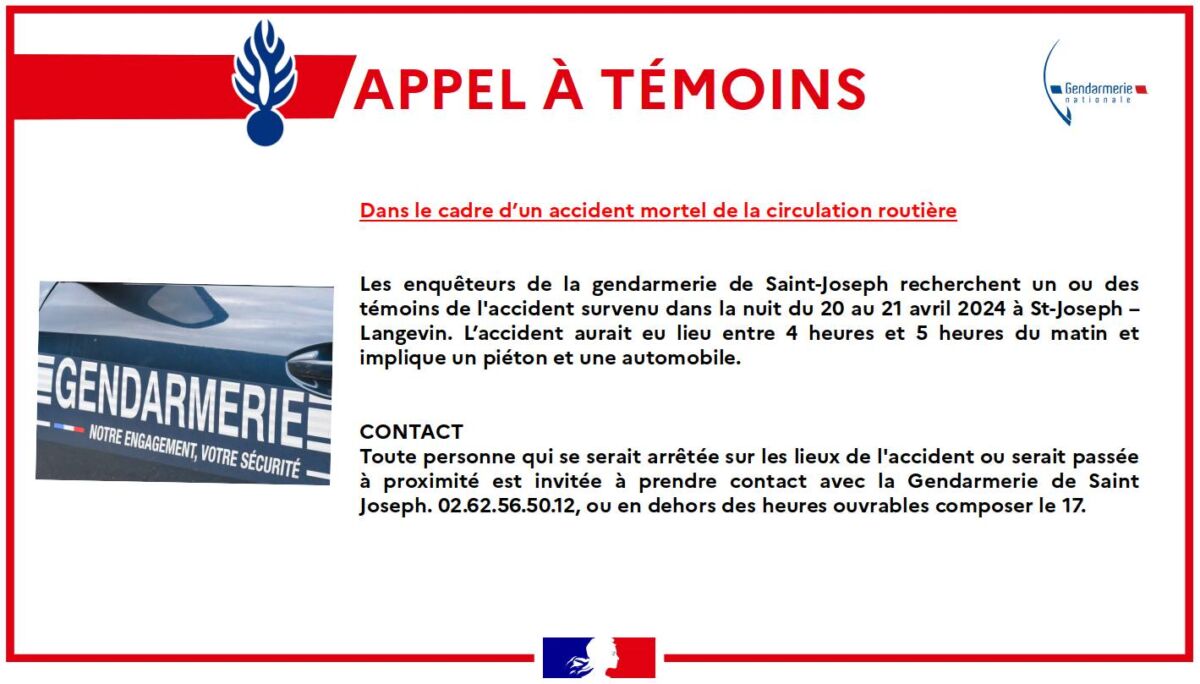 Accident mortel à Langevin : la gendarmerie lance un appel à témoins