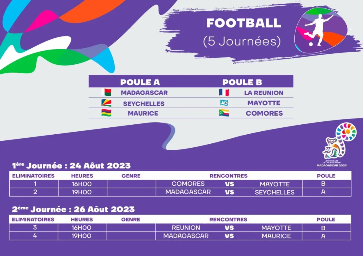Si le coup d’envoi des Jeux des îles de l’océan Indien (JIOI) ne sera donné que demain, vendredi 25 août, la compétition commence dès aujourd’hui pour le football. Pour la poule B où se trouve la sélection réunionnaise, le premier match aura lieu à 16h, heure de Madagascar, et mettre aux prises les Comores et Mayotte.  Pour la poule A, Madagascar, hôte de la compétition affrontera la sélection Seychelloise à partir de 19h, heure locale.