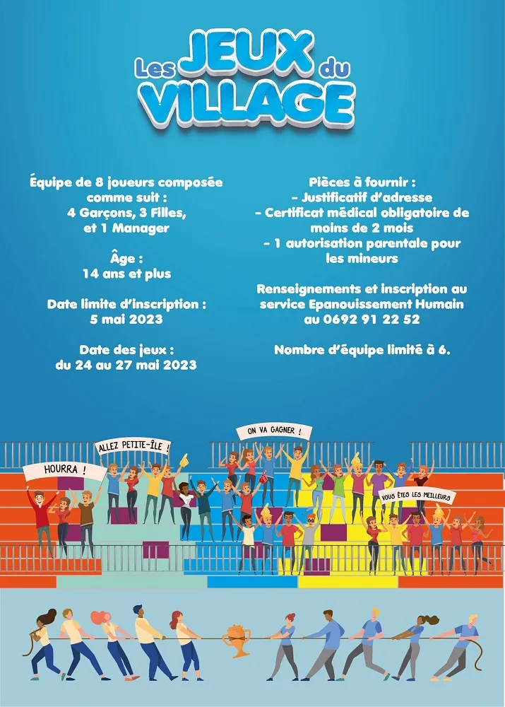 Dans le cadre des jeux du village, qui se dérouleront du 24 au 27 mai 2023, la mairie appelle toutes les associations de Petite-Île à constituer des équipes. Ces matchs sont ouverts aux membres des associations de Petite-Île âgés de 14 ans et plus au moment de l’événement et ayant leur résidence à Petite-Île.