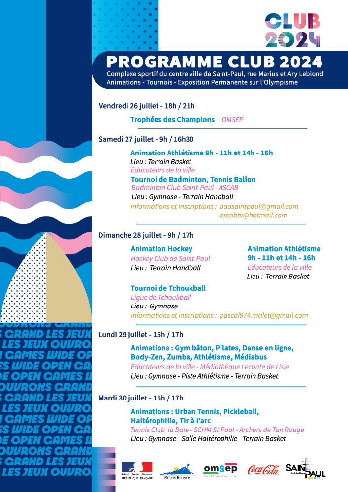 Programmation : www.mairie-saintpaul.re/club-jo-2024/