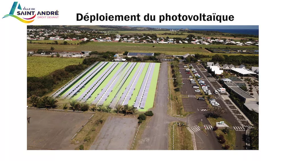 Concernant les projets « qui se concrétiseront bien avant la fin de la mandature », notons la couverture en panneaux photovoltaïque du boulodrome au Parc du Colosse ainsi que celle du parking. Une opération menée en étroite collaboration avec la SPL Horizon (Région) pour la production de 5 Méga Watt d’électricité. A terme, pas moins de 86 sites de la ville (bâtiments communaux, écoles, constructions neuves, futur centre technique de Ravine-Creuse…) seront recouverts en panneaux photovoltaïques. Un appel à projets sera lancé tous les 6 mois afin d’aller vite dans ce domaine.