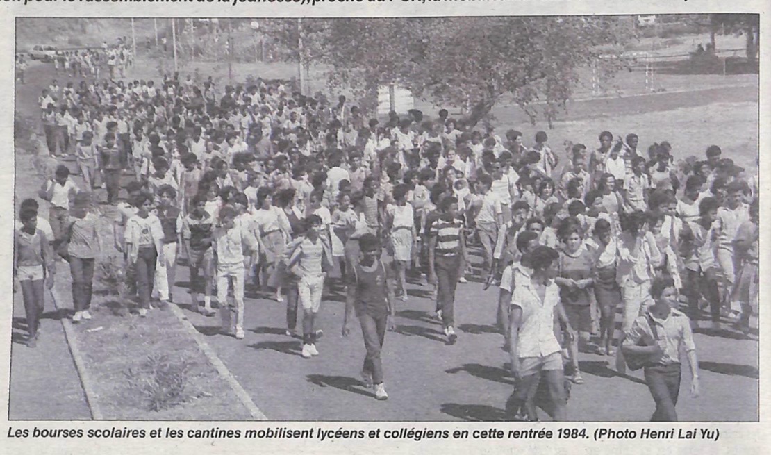 Manifestations en faveur des cantines et des bourses scolaires, organisées par le Comité d’Organisation pour le Rassemblement de la Jeunesse (CORJ) de Ary Yee Chong-Tchi Kan.