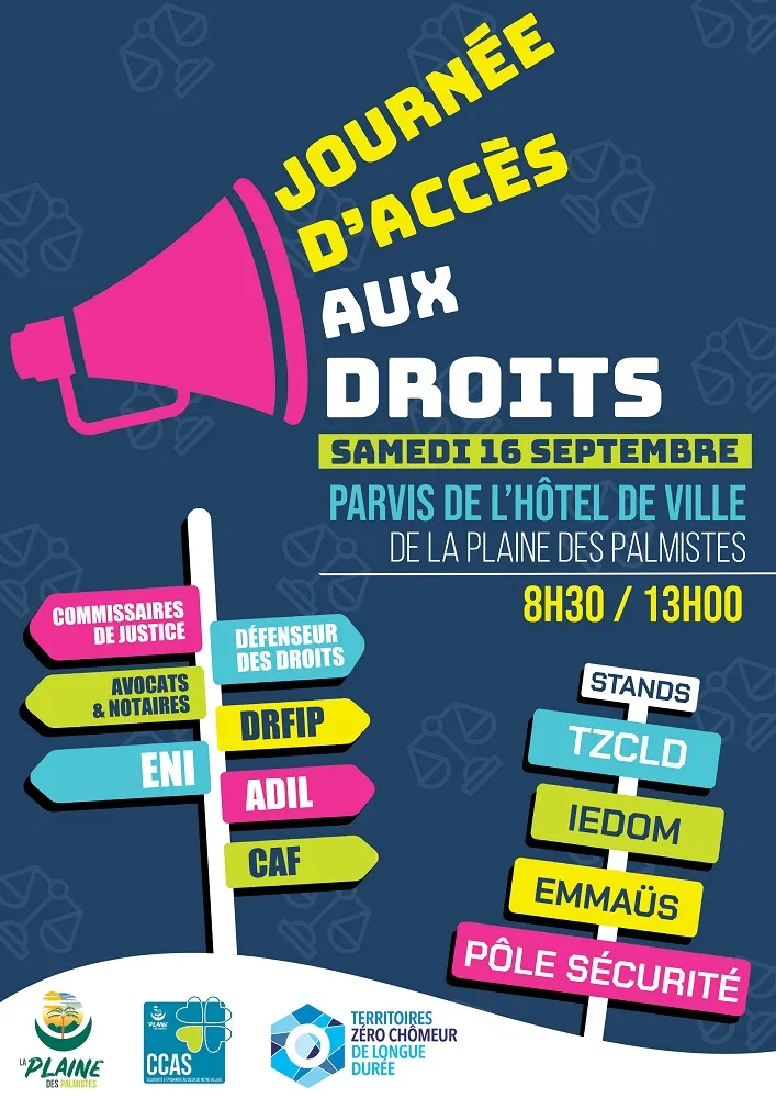 Cette manifestation organisée par Le CCAS de La Plaine des Palmistes, en collaboration avec le Conseil départemental d’accès au droit, est une réelle occasion pour le public de venir s’informer, de prendre conseil, d’être accompagné et aidé sur différentes problématiques dont des démarches judiciaires sur des sujets tels que des différends familiaux, problèmes de succession, conflits de voisinage, droit du travail, droits CAF et de retraite.