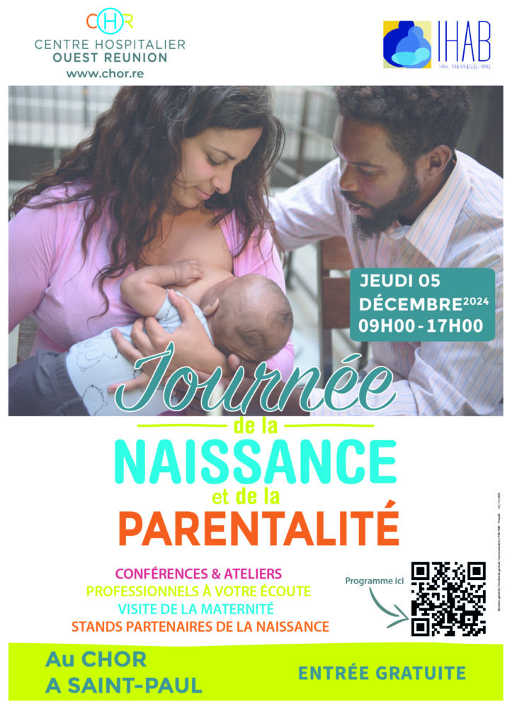 Vous pourrez également scanner le QR code présent sur l’affiche pour accéder au programme détaillé. Pourquoi participer ? Que vous soyez dans l’attente d’un enfant ou déjà parent, cet événement est une opportunité de renforcer vos connaissances et d’échanger avec des spécialistes passionnés. Lieu : CHOR, Saint-Paul ️ Entrée gratuite Ne manquez pas ce rendez-vous ! Préparez-vous à une journée riche en découvertes et en échanges. ![]()