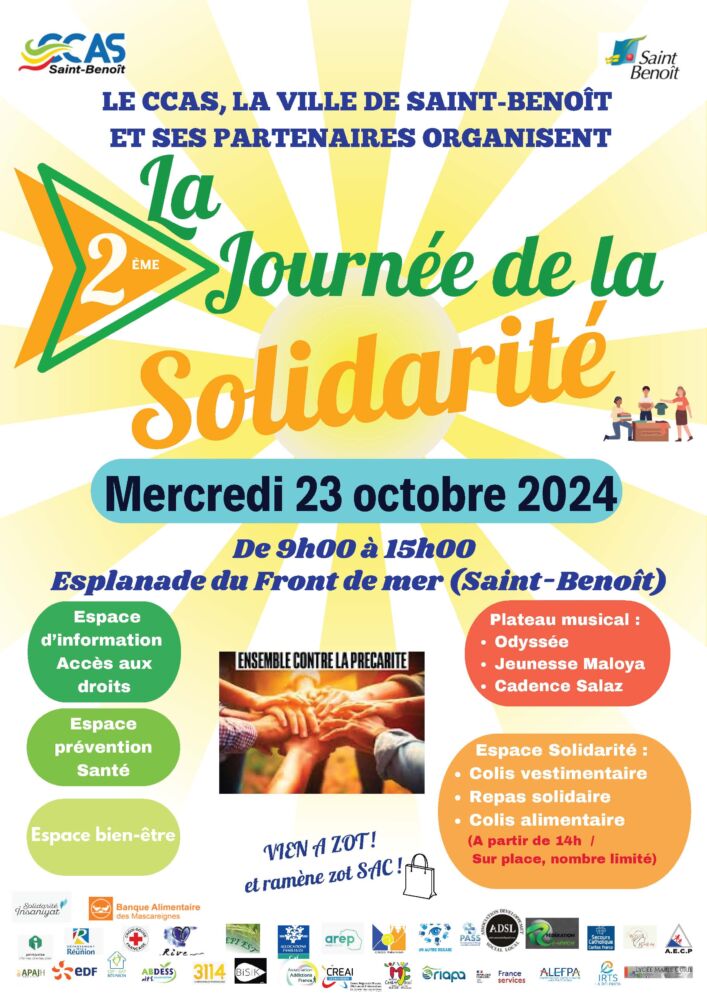 Le CCAS de Saint-Benoît, en collaboration avec la Ville et les partenaires, organise sa deuxième édition de la Journée de la Solidarité sur la thématique « Ensemble contre la précarité ».