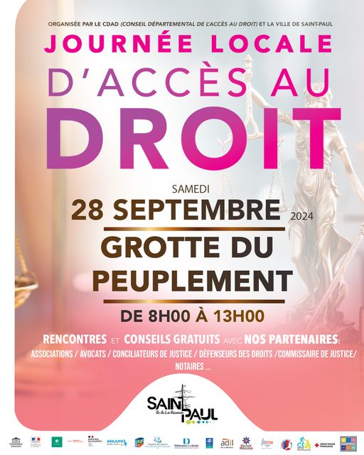 Le samedi 28 septembre 2023, la Ville de Saint-Paul accueille la Journée Locale de l’Accès au Droit, organisée par le Conseil Départemental d’Accès au Droit de La Réunion (CDAD). De 8h à 13h, à la grotte du peuplement de Saint-Paul, les habitants pourront consulter gratuitement des professionnels du droit et des associations pour des conseils sur des litiges familiaux, successions, conflits de voisinage ou contrats de travail. Cet événement sans rendez-vous est une occasion unique de s’informer sur ses droits.