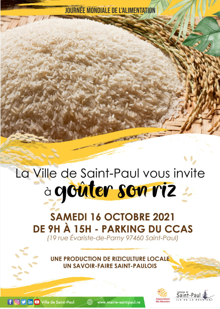 Collectivités/Saint-Paul Journée Mondiale de l’Alimentation : la Ville de St-Paul vous invite à goûter son riz par La Rédaction 15 octobre 2021 1 min de lecture Dans le cadre de la Journée Mondiale de l’Alimentation, la Ville de Saint-Paul vous invite à goûter son riz ce samedi 16 octobre 2021 de 9h à 15h sur le parking du CCAS. Ne manquez pas toute l’actualité de La Réunion ! Abonnez-vous à la newsletter de Free Dom ! Valider Partager Facebook Twitter Pinterest Linkedin Whatsapp Reddit Email Vous pourriez être intéressé par 29 décembre 2025 Point sur le réseau routier départemental, 29 décembre à 16H30 29 décembre 2025 Fortes pluies : appel à la plus grande prudence à Saint-Paul 29 décembre 2025 Intempéries : radiers submergés à Trois Bassins et à Saint-Paul La Rédaction Laisser un commentaire Annuler la réponseYour email address will not be published. Enregistrer mon nom, mon e-mail et mon site dans le navigateur pour mon prochain commentaire. Current ye@r * Leave this field empty Article précédent La CCIR organise un atelier gratuit pour améliorer votre présence en ligne Article suivant Ateliers Chantier d’Insertion (ACI) : lancement de l’appel à projets 2022 Articles récents... Mercredi 31 décembre 2025 – Météo, éphéméride et horoscope du jour Hommage à Johnny Hallyday sur Free Dom 2 ce 5 décembre Mardi 30 décembre 2025 – Météo, éphéméride et horoscope du jour Saint-Joseph : découverte de 2337 plants de cannabis, arrestation de 2 individus Point sur le réseau routier départemental, 29 décembre à 16H30 Suicide sur le pont de la Rivière d’Abord : importante mobilisation des secours et des forces de l’ordre Radier submergé à Ilet Furcy : la route de Cilaos fermée à la circulation cette nuit Fortes pluies : appel à la plus grande prudence à Saint-Paul Saint-Gilles-les-Bains : une route impraticable, les riverains montent au créneau (VIDEOS) Très grands excès de vitesse : un délit passible de prison depuis le 29 décembre 2025