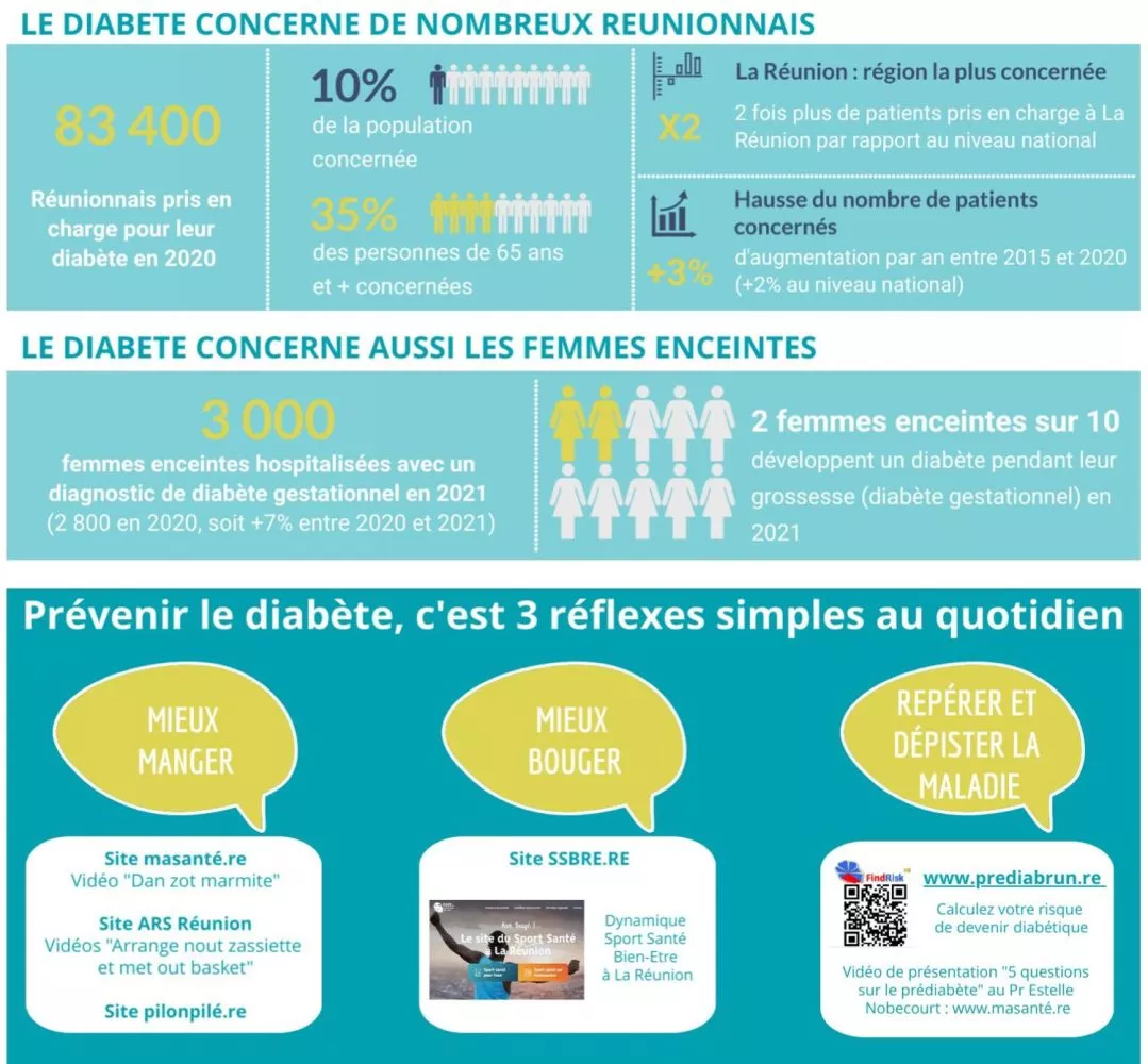 Le diabète touche près de 100 000 personnes à La Réunion et concerne 10% de la population de l’île. Ces chiffres sont sous-estimés car le diabète est une maladie asymptomatique, longtemps ignorée par les patients qui en sont atteints.