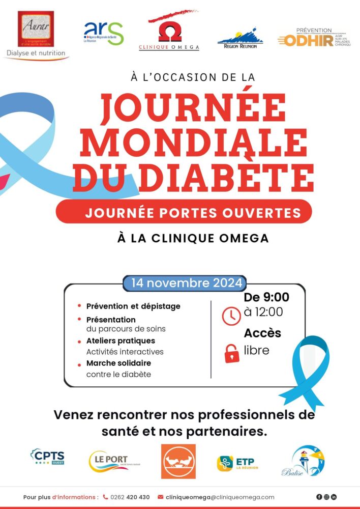 À l’occasion de la Journée mondiale du diabète, la clinique Omega de la ville du Port organise une matinée portes ouvertes le jeudi 14 novembre, de 9h à 12h. Cet événement vise à sensibiliser et informer le public sur la prévention et le dépistage du diabète, une maladie qui touche de nombreuses personnes à La Réunion.