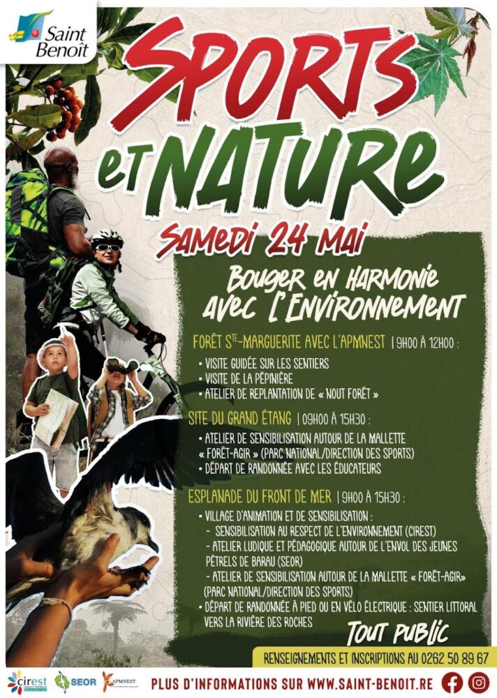 La ville de Saint-Benoît organise ce samedi 24 mai, la première édition de la Journée Sports & Nature, un événement familial et gratuit qui allie activités sportives, découvertes en pleine nature et sensibilisation à l’environnement.