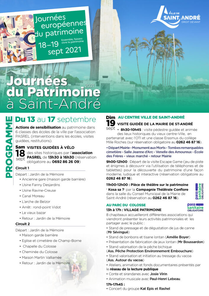 Collectivités/Saint-André Journées Européennes du patrimoine : que faire à St-André ? par La Rédaction 17 septembre 2021 1 min de lecture A l’occasion de la 38ème édition des Journées Européennes du patrimoine, les 18 et 19 septembre 2021, la ville de Saint-André vous propose de découvrir ou redécouvrir son Patrimoine. Ne manquez pas toute l’actualité de La Réunion ! Abonnez-vous à la newsletter de Free Dom ! Valider Partager Facebook Twitter Pinterest Linkedin Whatsapp Reddit Email Catégorie: JEP 2021 Vous pourriez être intéressé par 29 décembre 2025 Point sur le réseau routier départemental, 29 décembre à 16H30 29 décembre 2025 Fortes pluies : appel à la plus grande prudence à Saint-Paul 29 décembre 2025 Intempéries : radiers submergés à Trois Bassins et à Saint-Paul La Rédaction Laisser un commentaire Annuler la réponseYour email address will not be published. Enregistrer mon nom, mon e-mail et mon site dans le navigateur pour mon prochain commentaire. Current ye@r * Leave this field empty Article précédent La Créole : les maires du TCO demandent le retour à la normale au plus vite Article suivant World Clean Up Day : le programme à St-André ! Articles récents... Hommage à Johnny Hallyday sur Free Dom 2 ce 5 décembre Mardi 30 décembre 2025 – Météo, éphéméride et horoscope du jour Saint-Joseph : découverte de 2337 plants de cannabis, arrestation de 2 individus Point sur le réseau routier départemental, 29 décembre à 16H30 Suicide sur le pont de la Rivière d’Abord : importante mobilisation des secours et des forces de l’ordre Radier submergé à Ilet Furcy : la route de Cilaos fermée à la circulation cette nuit Fortes pluies : appel à la plus grande prudence à Saint-Paul Saint-Gilles-les-Bains : une route impraticable, les riverains montent au créneau (VIDEOS) Très grands excès de vitesse : un délit passible de prison depuis le 29 décembre 2025 Fermeture temporaire du sentier de la Canalisation des Orangers (cirque de Mafate)
