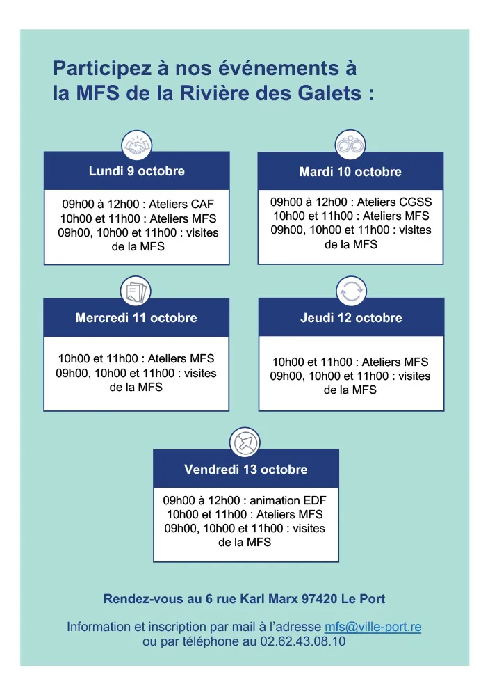 À l’occasion de ses journées portes ouvertes, la Maison France Services (MFS) de la Rivière des Galets, accueillera le public :