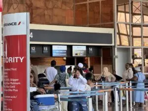 En période normale, un passager est souvent accompagné de quatre à cinq personnes. Durant les périodes de départs étudiants, ce chiffre peut grimper à sept. Afin d’éviter les engorgements, l’accompagnement physique est limité aux mardis, vendredis et samedis matin. En dehors de ces créneaux, les accompagnants sont invités à laisser leurs proches à l’entrée de la zone d’enregistrement, avant de les retrouver plus loin, après les formalités.