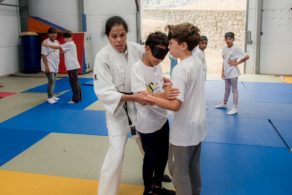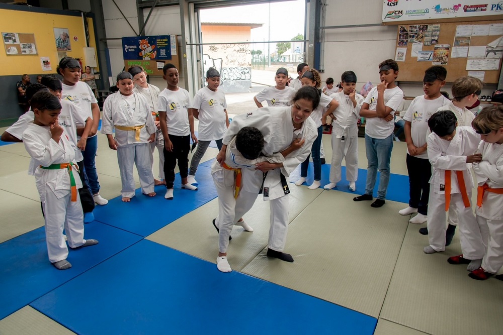 Entre conseils et quelques prises d’initiation au para-judo, Karima Medjeded a partagé sa grande expérience de championne, dont le sommet a été la médaille d’or aux Jeux paralympiques d’Athènes en 2004, la première breloque de l’histoire du sport français féminin remportée dans cette grande compétition. « C’est très différent du judo que je pratique en club », a confié le jeune Camille après quelques combats. « C’est plus difficile lorsqu’on ne peut pas voir. Cela demande une très grande concentration. » Son camarade de classe Daarshane, élève en karaté, a également été impressionné, aussi bien par « la technique de la discipline » que par sa prestigieuse enseignante du jour : « Karima est très forte ! On a beaucoup appris avec elle aujourd’hui. » Sourire aux lèvres et plus que jamais à l’écoute de tous, la judoka non-voyante a pris le temps d’échanger. « C’est mon métier, mais c’est toujours un bonheur de sensibiliser les jeunes des écoles à pratiquer un sport, quel qu’il soit. De les motiver en leur montrant le chemin. De véhiculer quelques messages forts, notamment sur le respect, le fair-play, d’être à l’écoute. Ils se sont tous prêtés au jeu avec joie. Il n’y a rien de plus beau », a conclu l’invitée de prestige de 1000 Sourires, symbole fort de l’histoire des Jeux paralympiques, qui battent actuellement leur plein à Paris.