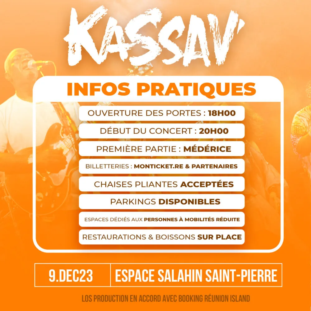 Kassav à La Réunion, ce sera ce samedi 9 décembre. Tout est fin prêt pour le show, les artistes sont bel et bien arrivés sur l’île. Dans une récente communication, l’organisateur de ce concert du 9 décembre à l’espace Salahin à Saint Pierre, présente des informations pratiques relative à l’organisation, le déroulement du concert et les parkings et la restauration sur place et sur le déroulement du show. Selon les informations reçues, les guichets s’ouvriront à 17h et les portes à 18H. L’avant-première de ce concert sera donné par l’artiste réunionnaise Médérice et le groupe Kassav débutera sa prestation à partir de 21h.