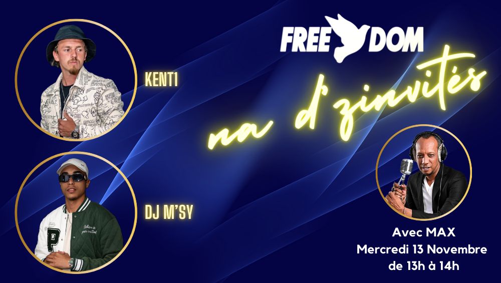 Tous les mercredi, de 13h à 14h, ne ratez pas l’émission Free Dom na d’zinvités sur nos ondes. Max accueillera un invité spécial : Kent1, l’artiste talentueux bien connu pour ses contributions à la scène musicale et artistique locale.