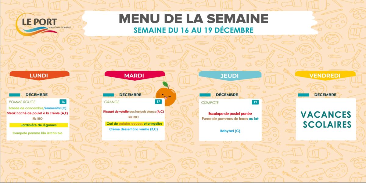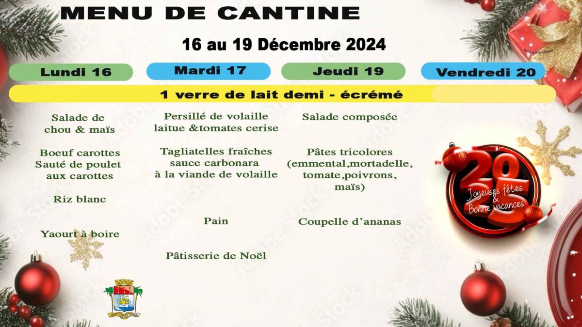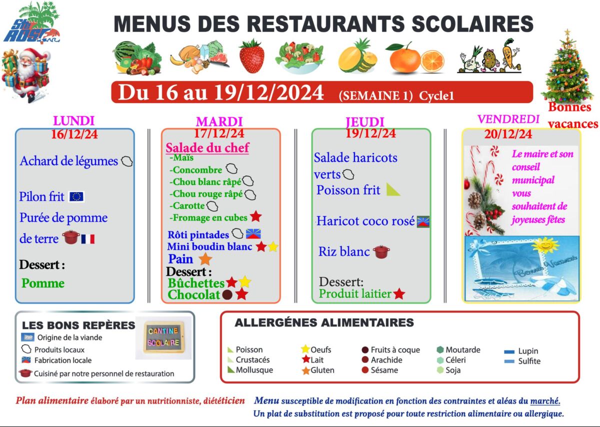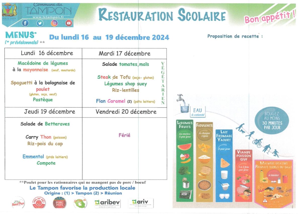 Actualités Kossa i manze à la cantine cette semaine du 16 au 19 décembre par Céline Hardelain 16 décembre 2024 1 min de lecture Les menus de la restauration scolaire du lundi 16 au jeudi 19 décembre. Les Avirons Saint-Benoit Saint-Paul Sainte-Rose Saint-Pierre Le Port Le Tampon Ne manquez pas toute l’actualité de La Réunion ! Abonnez-vous à la newsletter de Free Dom ! Valider Partager Facebook Twitter Pinterest Linkedin Whatsapp Reddit Email Vous pourriez être intéressé par 31 décembre 2025 Mercredi 31 décembre 2025 – Météo, éphéméride et horoscope du jour 30 décembre 2025 Mardi 30 décembre 2025 – Météo, éphéméride et horoscope du jour 29 décembre 2025 Saint-Joseph : découverte de 2337 plants de cannabis, arrestation de 2 individus Céline Hardelain Laisser un commentaire Annuler la réponseYour email address will not be published. Enregistrer mon nom, mon e-mail et mon site dans le navigateur pour mon prochain commentaire. Current ye@r * Leave this field empty Article précédent Saint-Joseph : retour sur le tout premier championnat de La Réunion de Street Lifting (Vidéo-Photos) Article suivant Lamba : une étoffe, une histoire, une culture – Exposition à la Villa de la Région Articles récents... Mercredi 31 décembre 2025 – Météo, éphéméride et horoscope du jour Hommage à Johnny Hallyday sur Free Dom 2 ce 5 décembre Mardi 30 décembre 2025 – Météo, éphéméride et horoscope du jour Saint-Joseph : découverte de 2337 plants de cannabis, arrestation de 2 individus Point sur le réseau routier départemental, 29 décembre à 16H30 Suicide sur le pont de la Rivière d’Abord : importante mobilisation des secours et des forces de l’ordre Radier submergé à Ilet Furcy : la route de Cilaos fermée à la circulation cette nuit Fortes pluies : appel à la plus grande prudence à Saint-Paul Saint-Gilles-les-Bains : une route impraticable, les riverains montent au créneau (VIDEOS) Très grands excès de vitesse : un délit passible de prison depuis le 29 décembre 2025