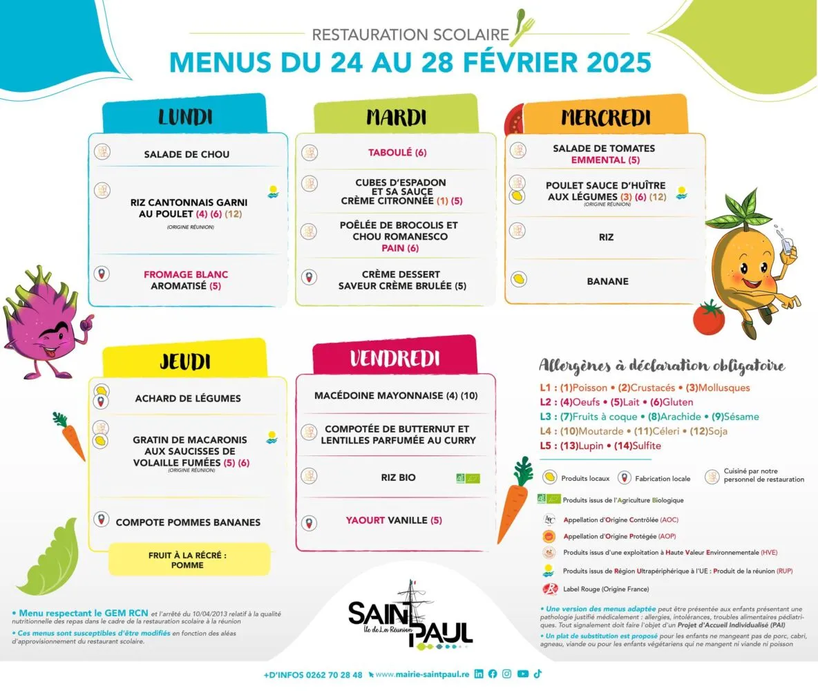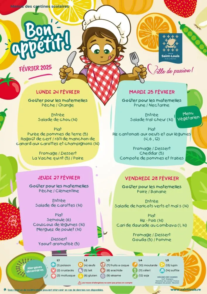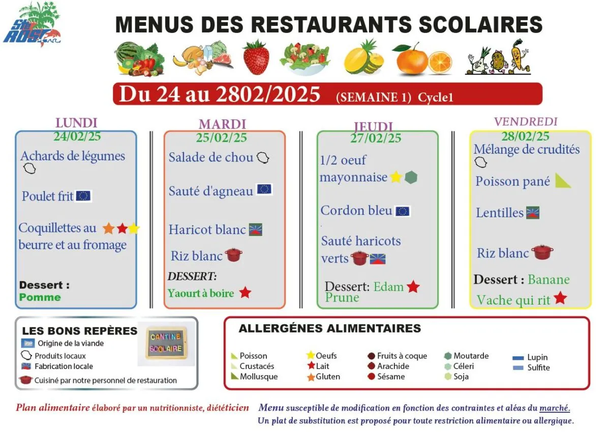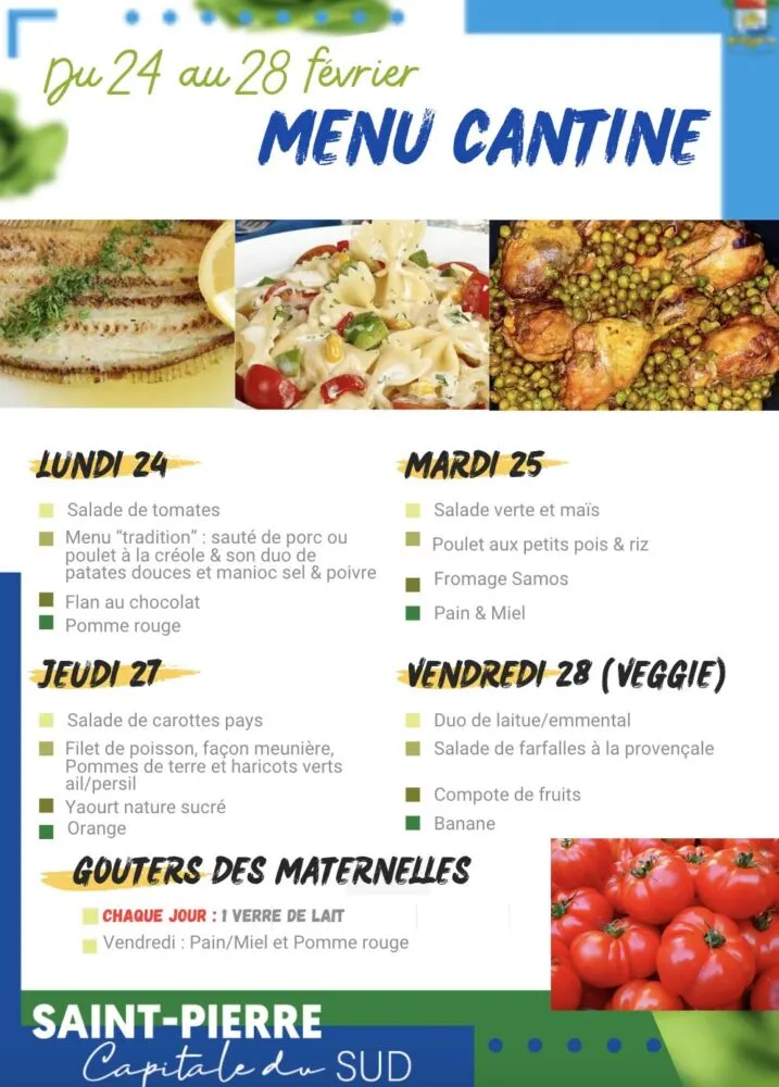 Kossa i manze à la cantine cette semaine ? Découvrez les menus pour nos marmailles du 24 au 28 février.