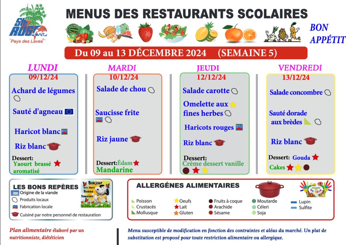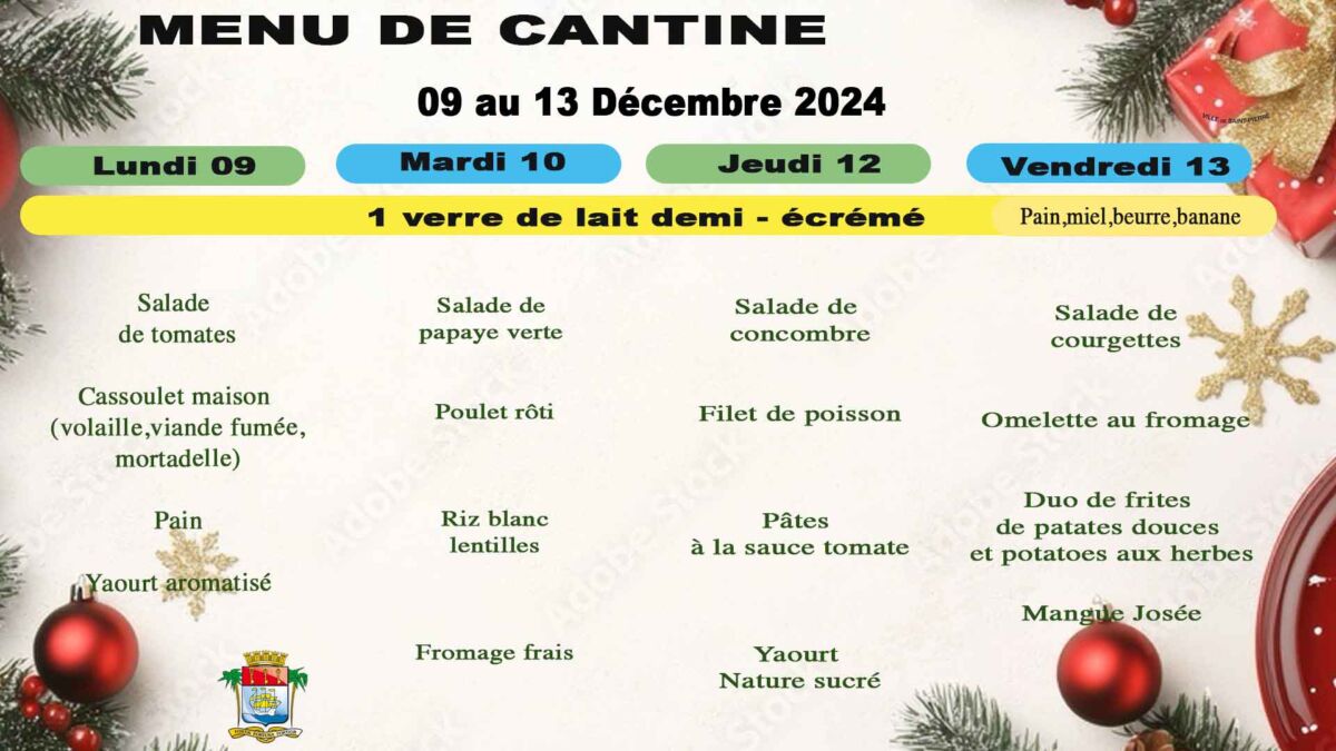 Kossa i manze à la cantine cette semaine du 9 au 13 décembre