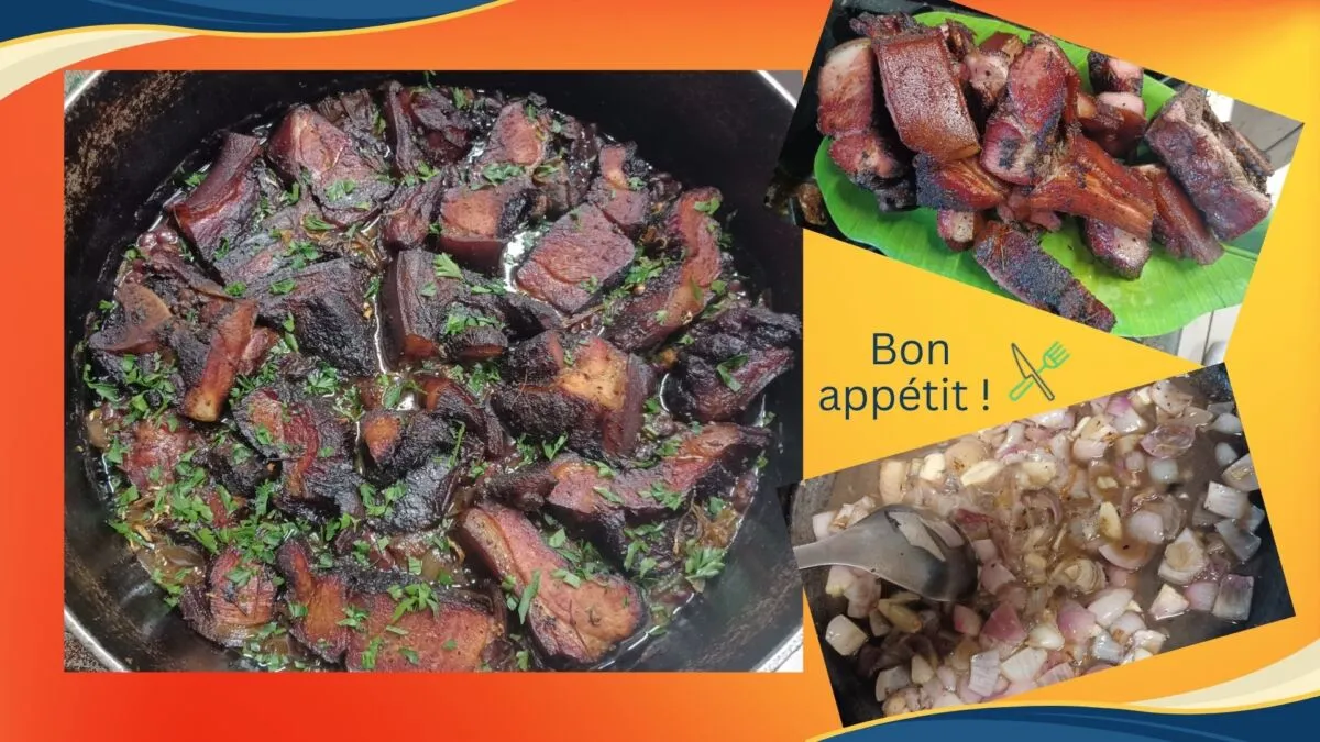 Au menu, une recette typiquement réunionnaise : le boucané rôti parfumé au piment chocolat et accompagné de haricots San’de bèf (haricots sang de bœuf).
