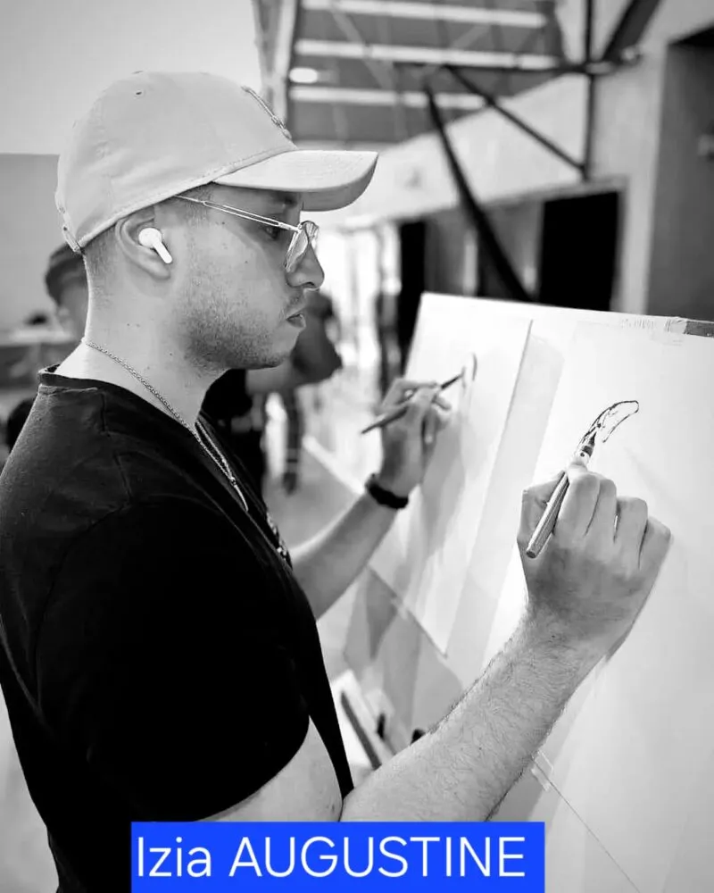 Enfin, Izia AUGUSTINE, jeune artiste réunionnais autodidacte originaire de Saint-André, insuffle au livre une dimension visuelle saisissante. Réputé pour sa capacité unique à dessiner avec les deux mains simultanément, il avait déjà impressionné en 2022 en réalisant huit toiles en deux jours, performance saluée par la presse. Son univers pictural, à la fois brut et poétique, dialogue ici avec les mots pour offrir une œuvre totale.