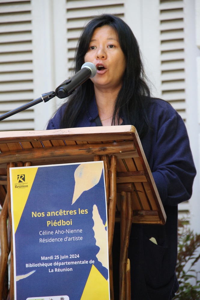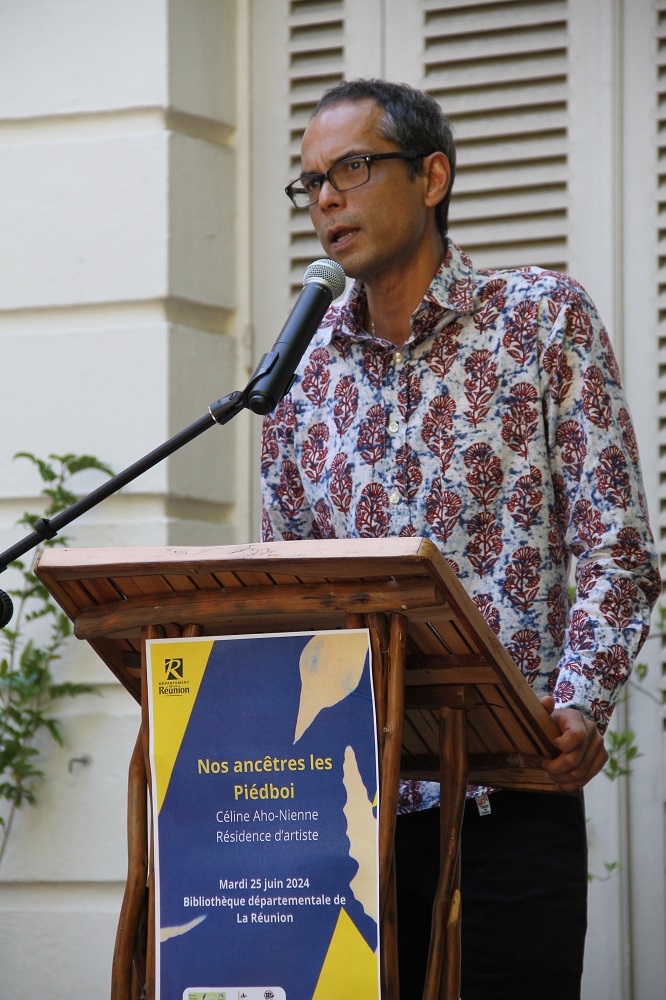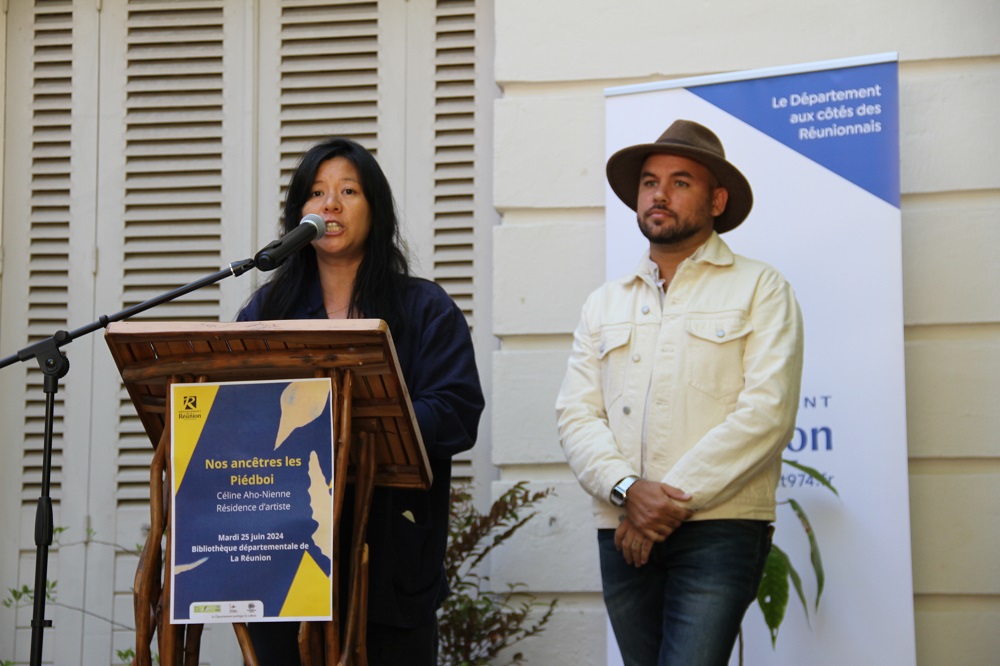 Ce mardi 25 juin, la Bibliothèque Départementale de La Réunion a vibré au rythme des mythes et légendes locales avec le vernissage de l’exposition « Nos Ancêtres les Piedboi ». Cet événement exceptionnel met en avant les mythologies réunionnaises à travers les œuvres de deux artistes en résidence : Céline Aho-Nienne et Mathieu Girondin, alias Papié Songe.