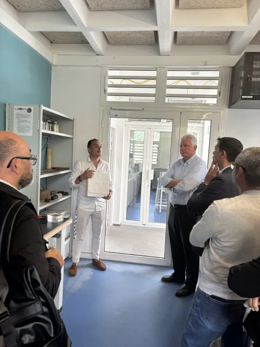 Ce mardi 26 août 2025, dans le cadre du Comité Régional de l’Innovation Territoriale, le Président de la CASUD, Jacquet Hoarau, Maya Césari (Conseillère régionale déléguée à l’Innovation), Jeannot Lebon, et Jean-Pierre Thérincourt (Vice-présidents de la CASUD), accompagnés d’une délégation composée, entre autres, de la Chambre des Métiers et de l’Artisanat, du Comité de Développement de la CASUD, de l’Université ont visité les locaux de l’association AUDACE à la Plaine des Cafres et le laboratoire LABIMAC de l’Université du Tampon.