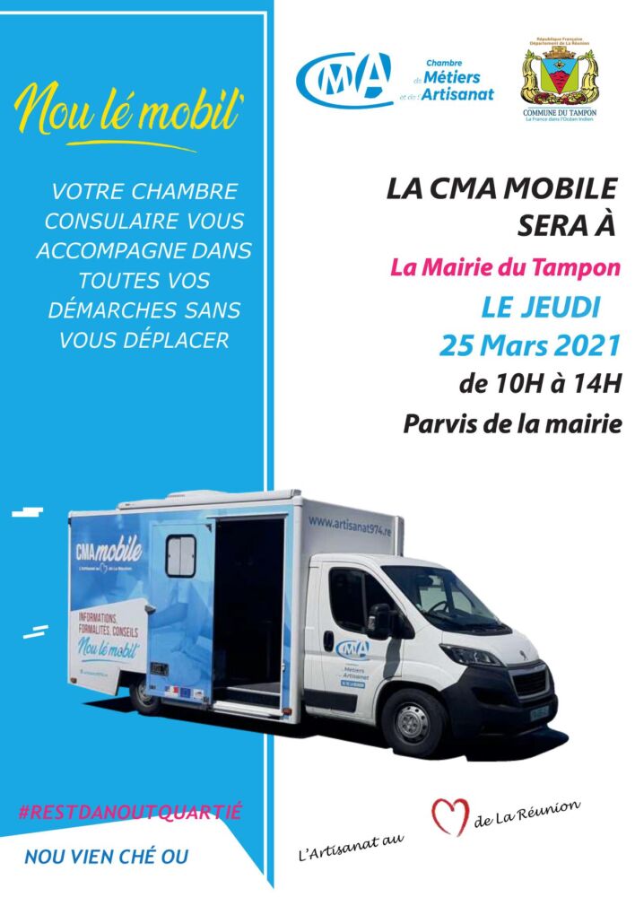 Chambre de métiers/Collectivités La Chambre des Métiers et de l’Artisanat mobile se rend au Tampon par La Rédaction 24 mars 2021 1 min de lecture La CMA MOBILE sera demain, jeudi 25 mars, de 10h à 14h sur le parvis de la mairie. Ne manquez pas toute l’actualité de La Réunion ! Abonnez-vous à la newsletter de Free Dom ! Valider Partager Facebook Twitter Pinterest Linkedin Whatsapp Reddit Email Vous pourriez être intéressé par 14 octobre 2025 Crise à la CCIR : les PME ultramarines en état d’alerte (Photos-Vidéo) 15 septembre 2025 Le président de la Chambre de Métiers appelle à la préservation de la LODEOM 28 août 2025 La Chambre de Métiers et de l’Artisanat mise sur l’innovation pour la formation mécanique La Rédaction Laisser un commentaire Annuler la réponseYour email address will not be published. Enregistrer mon nom, mon e-mail et mon site dans le navigateur pour mon prochain commentaire. Current ye@r * Leave this field empty Article précédent Captage de Bras Guillaume/Colorado : des travaux en cours sur une conduite d’eau endommagée Article suivant VIDEO ! Pizzaiolo, boulanger, charcutier-traiteur : l’URMA forme les professionnels de demain Articles récents... Hommage à Johnny Hallyday sur Free Dom 2 ce 5 décembre Mardi 30 décembre 2025 – Météo, éphéméride et horoscope du jour Saint-Joseph : découverte de 2337 plants de cannabis, arrestation de 2 individus Point sur le réseau routier départemental, 29 décembre à 16H30 Suicide sur le pont de la Rivière d’Abord : importante mobilisation des secours et des forces de l’ordre Radier submergé à Ilet Furcy : la route de Cilaos fermée à la circulation cette nuit Fortes pluies : appel à la plus grande prudence à Saint-Paul Saint-Gilles-les-Bains : une route impraticable, les riverains montent au créneau (VIDEOS) Très grands excès de vitesse : un délit passible de prison depuis le 29 décembre 2025 Fermeture temporaire du sentier de la Canalisation des Orangers (cirque de Mafate)