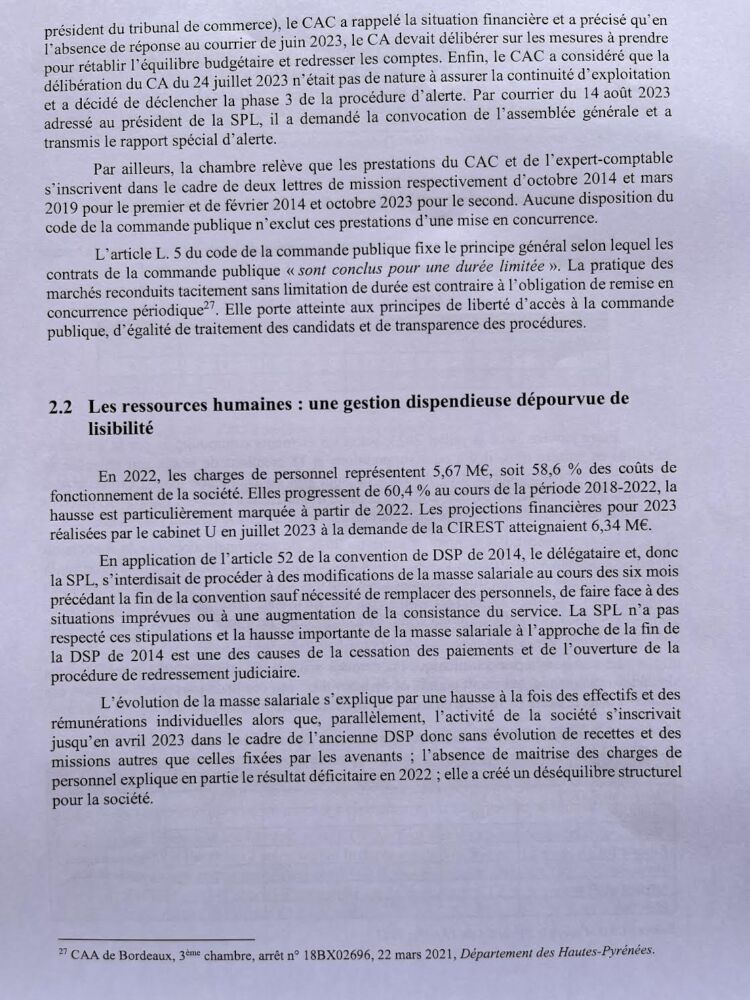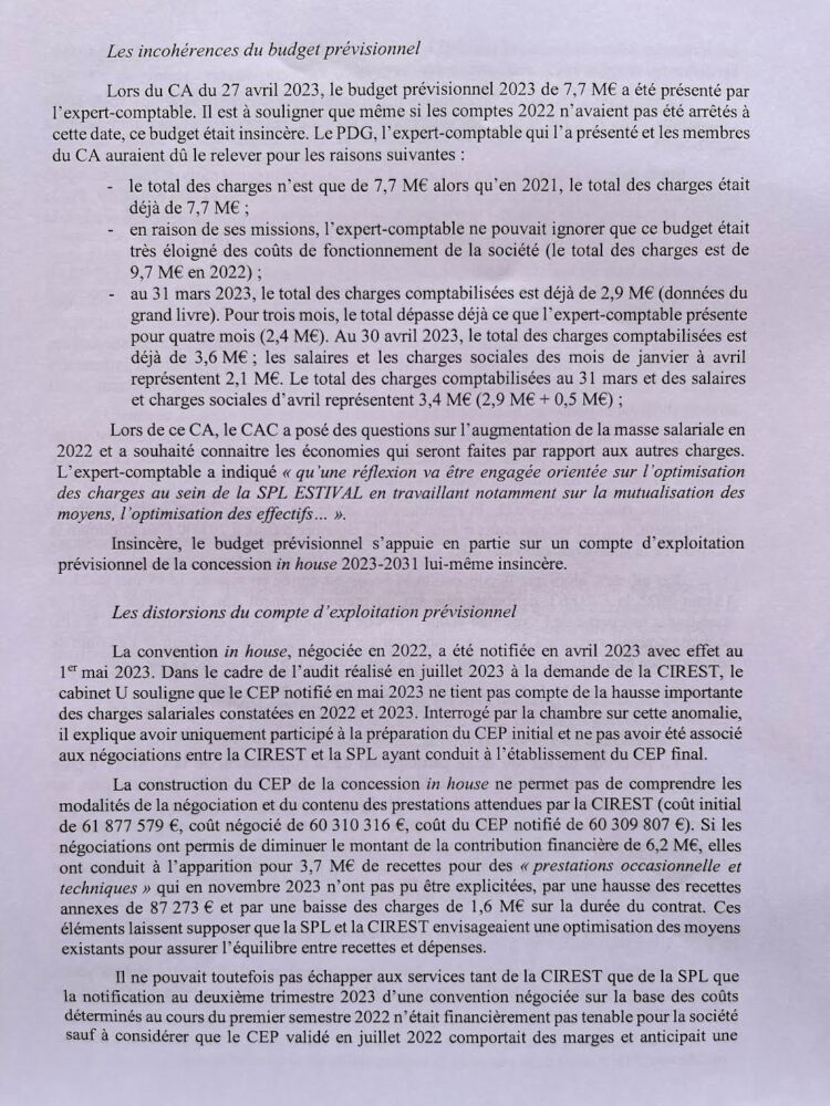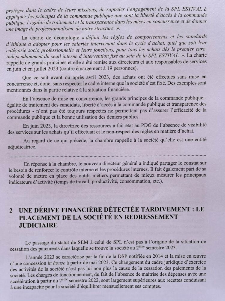 Vous trouverez ci-dessous quelques extraits du rapport définitif de la Chambre régionale des comptes qui expliquent les dysfonctionnements relevés dans la gestion de la SPL Estival :