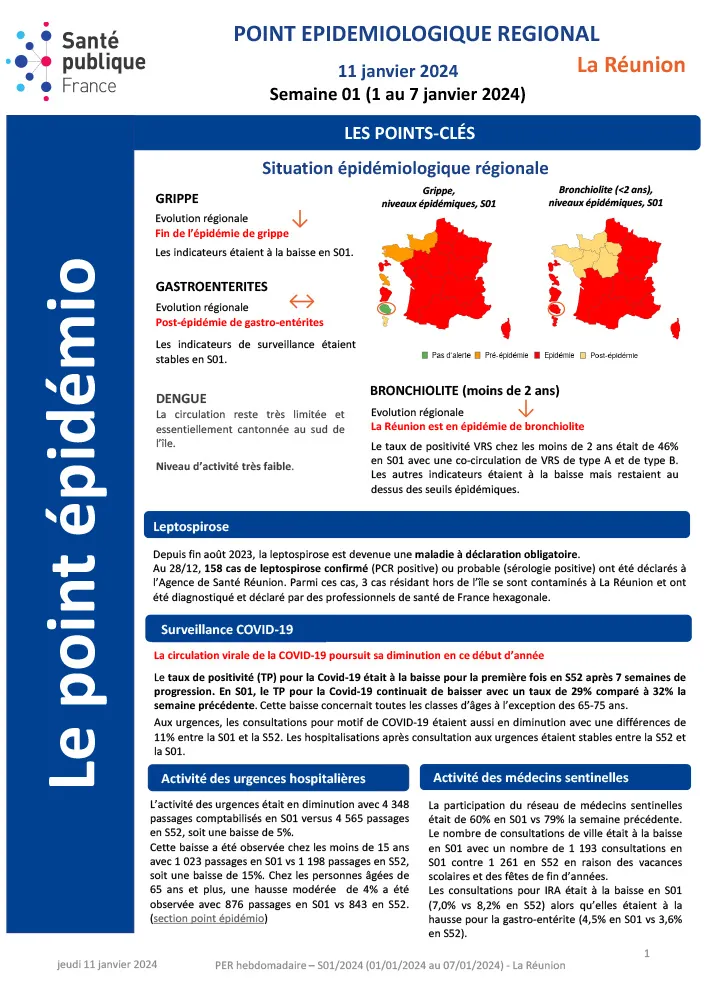 - Gastro-entérite : La Réunion reste en phase de post-épidémie de gastro-entérite. Les indicateurs restaient stables en S01 en comparaison à la semaine précédente.