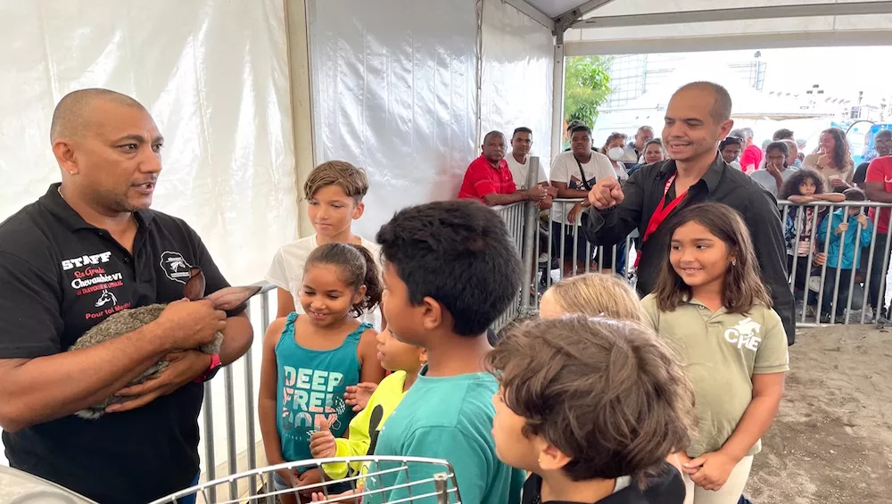 Il s’y connaît aussi en lapins, manifestement. C’est lui qui organise en effet, dans le cadre de la 43ème foire agricole de Bras-Panon, des courses de lapins. Notre journaliste Yves Mont-Rouge a assisté cet après-midi (lundi 16 mai) à une de ces courses qui se déroule tout au fond du champ de foire, près de la ferme située pas loin de la caserne des pompiers. Judex Therméa a fait aménager une piste spéciale, sous une immense tente, avec gradins s’il vous plaît, pour les spectateurs, nombreux à y assister. Beaucoup de parents notamment.