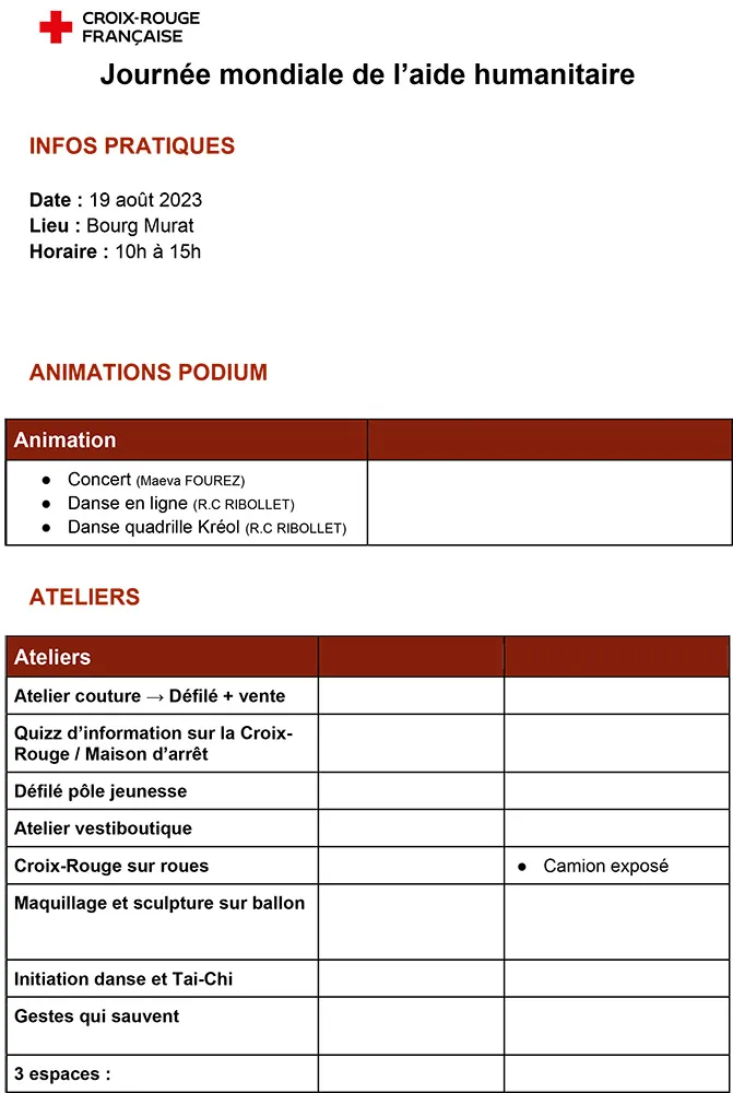 Samedi 19 août 2023, la Délégation Territoriale de la Croix-Rouge Réunion se mobilise et organise des animations à l’occasion de la Journée Mondiale de l’Humanitaire. Les bénévoles vous donnent rendez-vous de 10h00 à 15h00 aux Grands Kiosques de Bourg Murat.