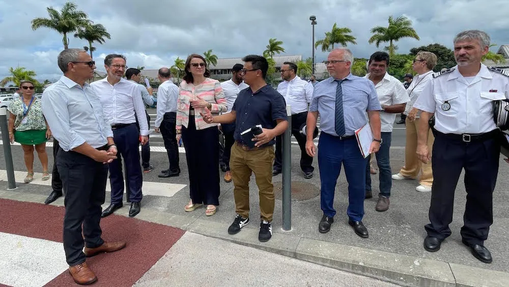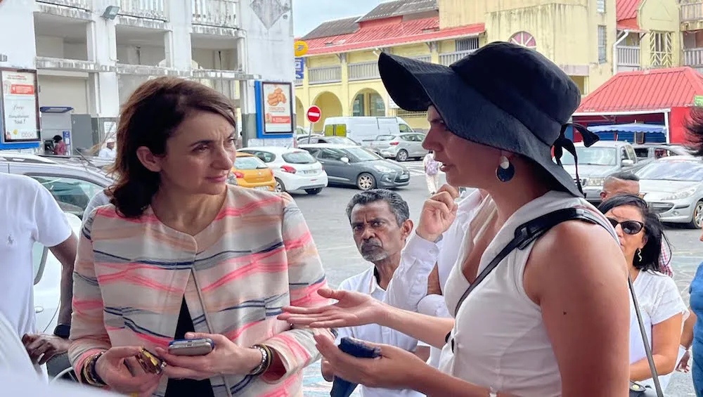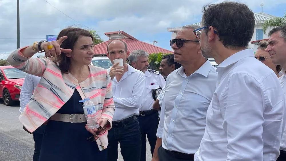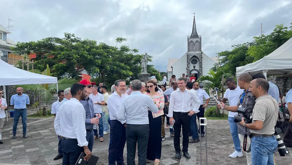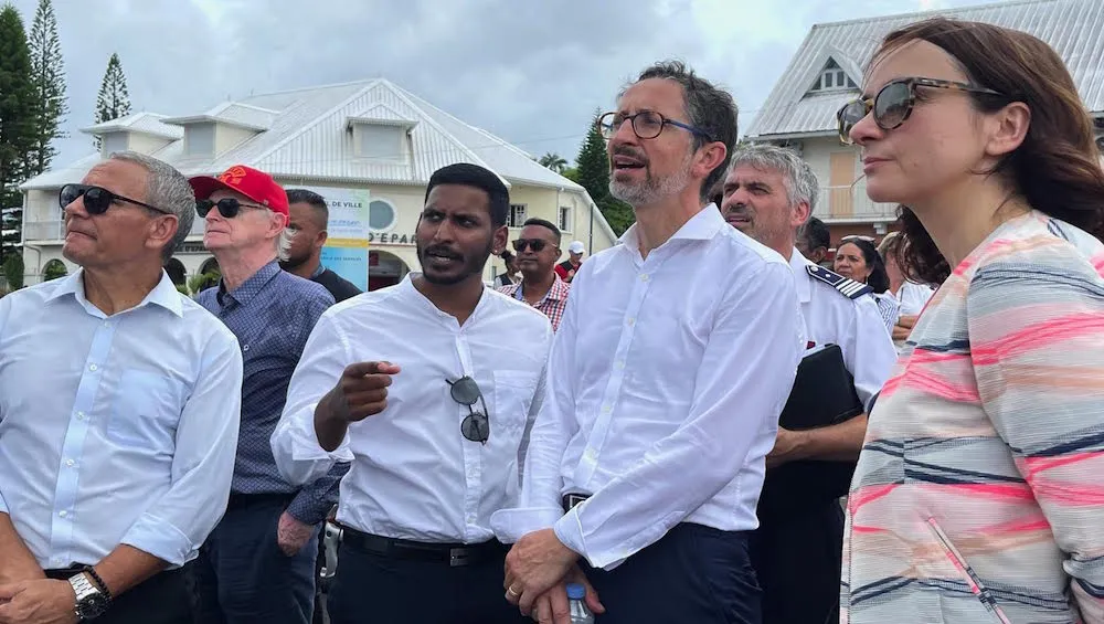 Tout d’abord à Saint-André où elle est arrivée aux environs de 13h30 Anne-Claire Mialot a effectué un tour complet – et à pieds s’il vous plaît par une température de près de 30° – des travaux en cours du centre-ville dans le cadre de l’ANRU en écoutant attentivement les explications du maire, Joé Bédier, du directeur des projets ANRU à Saint-André, Mathieu Lam-Yam, de Capucine Dijoux et du directeur de cabinet Guillaume Govindin.