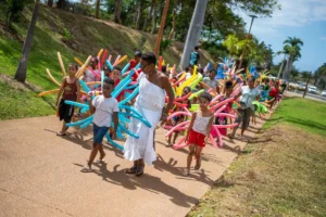 Dans le cadre des festivités de fin d’année, adultes et enfants étaient conviés à une journée récréative le 14 décembre au Centre social et culturel Coeur Saignant. Le 1er «carnaval en ballon » a été marqué par un défilé en présence de Wilfrid Cerveaux, adjoint au maire, délégué à la Vie associative et des quartiers. Restitution également des différents ateliers menés tout au long de l’année (hip-hop, salsa, quadrille, maloya, musique) et place à un spectacle de magie. Dans la matinée, les adhérents du Centre ont pu profiter de plusieurs animations comprenant structures gonflables et ateliers maquillage et coloriage.