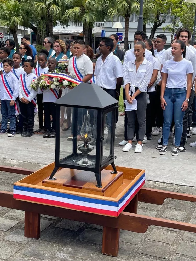 La flamme a été amenée par les membres de l’Amicale régimentaire, les anciens combattants, accompagnés par des élèves du lycée Marie Curie (Sainte-Anne). Deux lettres de poilus ont été lues par des élèves du collège Bassin Bleu de Sainte-Anne. Notre journaliste Yves Mont-Rouge était sur place :