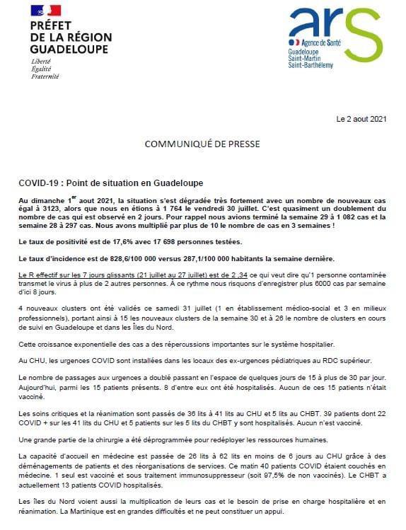 Après la Martinique : la Guadeloupe est confinée ! Dans ce département, on constate une hausse fulgurante de cas de Covid-19, et la conséquence est un confinement décrété cette nuit , en vigueur dès demain et pour une durée de trois semaines a annoncé le préfet Alexandre Rochatte qui a proposé une formule aménagée.