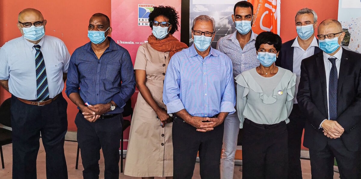 Maurice Gironcel (chemise bleue) à la droite de la maire de Saint-Denis, Ericka Bareigts