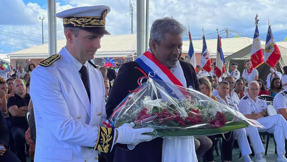 Les officiels ont ensuite déposé une gerbe devant la Flamme installée au pied du podium. Le maire Jeannick Atchapa a tenu un discours,de bienvenue, suivi du sous-préfet de Saint-Benoit qui a expliqué toute la symbolique de la Flamme. Pour cette journée, la municipalité de Bras-Panon avait invité des représentants de toutes les forces armées présentes dans l’île ainsi que ceux du comité inter-religieux.