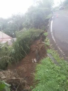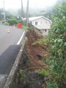 La route qui s’est effondrée à la Montagne au niveaux du 10e km menace la case d’un auditeur. Les bus et le poids lourds circuleraient en effet tout les jours sur cette portion qui a subi de gros dégâts suite au passage de Garance : « J’habite à la Montagne au 10e km cd41. Au passage du cyclone Garance, j’ai été victime d’inondation et subi des gros glissements de terrain par rapport à là route et ses évacuations d’eau qui n’ont pas tenu. La dde est au courant mais n’est jamais venu voir. »