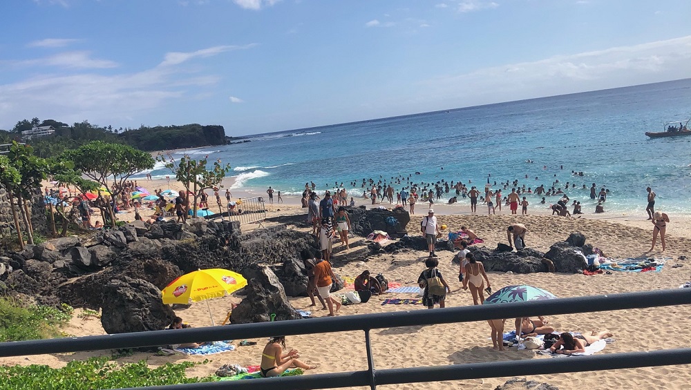 La plage de Boucan Canot bondée de monde juste avant le couvre-feu