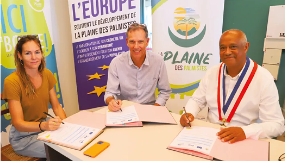 La réception du chantier s’était tenue le mercredi 13 décembre dernier avec la signature du procès-verbal de réception réunissant M. Johnny Payet, maire de La Plaine des Palmistes ; le maître d’œuvre, l’entreprise LAB Réunion ; et le titulaire du macro-lot n°1, le groupement SBTPC-SOGEA / SBTPL.