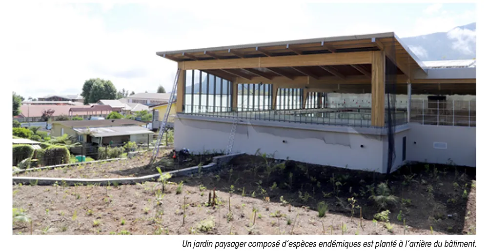 La partie arrière du terrain accueille un jardin paysager planté en espèces endémiques ayant vocation à traiter l’eau pluviale du projet.